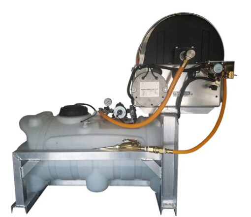 - Manual or electric hose reel with 150' or 300' of high pressure spray hose