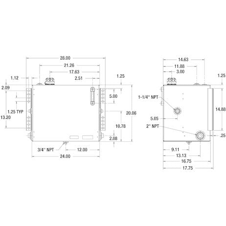 - The reservoirs features a 2 in. NPT suction/return port and 1-1/4 in. NPT return port.