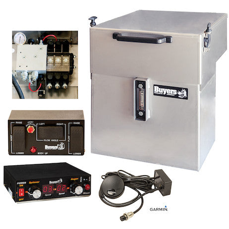 - Buyers Products 15 Gallon Central Hydraulic System - 6 Function, Electric On/Off is an all-in-one way to power and operate a hoist, plow, spreader, and pre-wet system. The system is quick and easy to install and even easier to use. Features like in-cab electric controls are ideal for installers and operators alike. By eliminating the need to plumb multiple hydraulic lines into the cab, the controls cut down install time, save cab space, and keep the heat and noise outside the cab. An optional GPS-based ground speed control system gives spreader operators superior control over material usage. With the GPS installed, the spreader will automatically adjust its flow rate based on vehicle speed. This ensures a proper level of salt coverage regardless of how fast or slow the truck is moving.