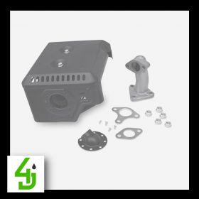 Honda GX390 Muffler Kit including Manifold and Muffler Muffler Exhaust with Heat Shield fits GX340 and GX390. Includes deflector, manifold, and bolts.
