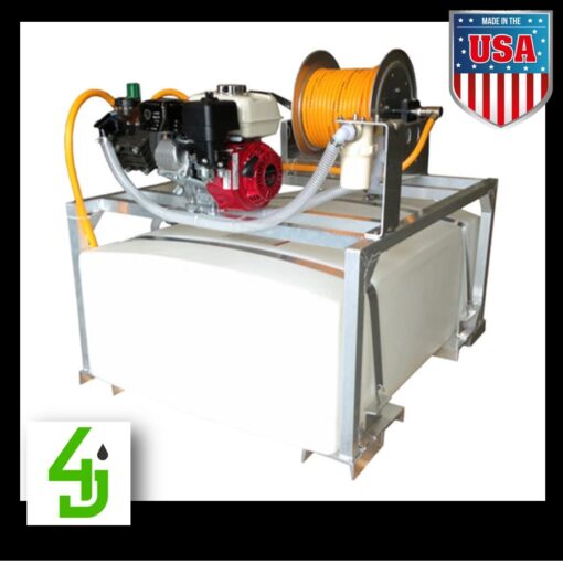 - Manual or electric hose reel with 300' of high pressure spray hose