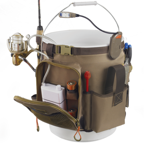 The Rigger is Wild River’s soft tackle, 5-gallon bucket organizer. It comes with an LED light system that allows you to see into the bucket or focus it on your work area when darkness is creeping in. It also features a zippered pocket ready for your aerator and spare batteries to help you keep your bait lively. The Rigger has storage for two 3500-series trays, and an extra pocket to hold a third or another reel and line.